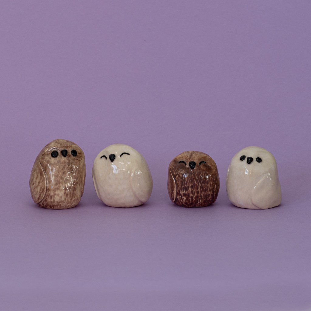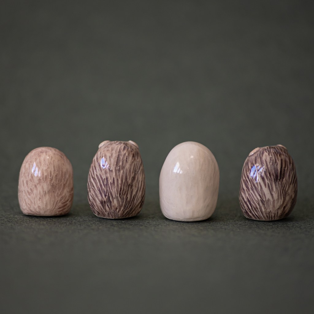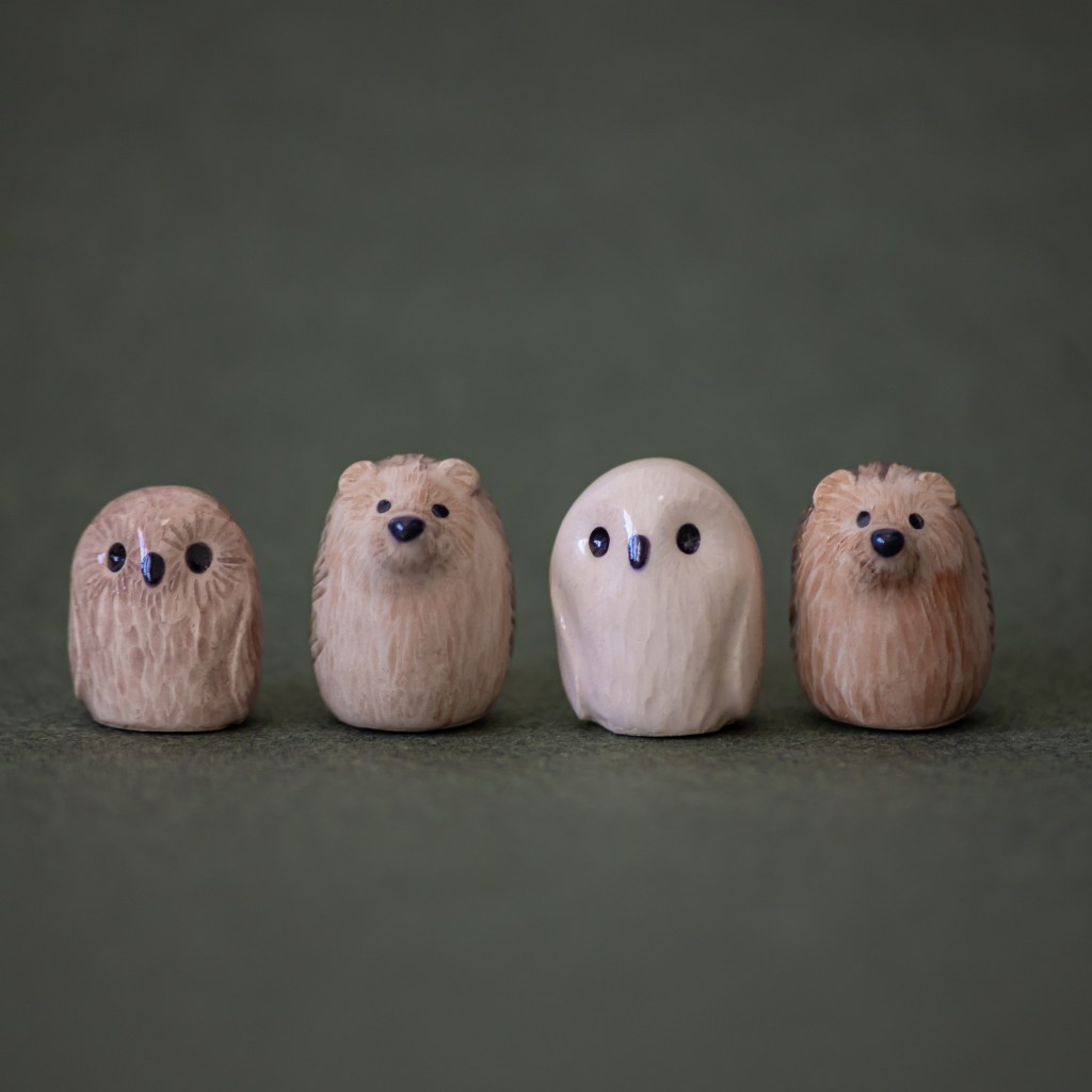 Käsinrakennetut pienet pöllöt ja siilit, ~5cm korkeat patsaat alkaen 20 € / kpl, ~2cm korkeat minipatsaat alkaen 10 € / kpl. Pystymme valmistamaan myös muita eläimiä toiveiden mukaisesti.